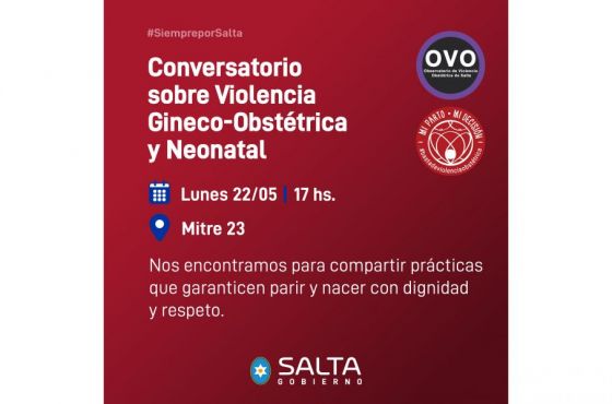 La Secretaría de las Mujeres, Géneros y Diversidad y el Observatorio de Violencia Obstétrica brindarán un conversatorio sobre Violencia Gineco-Obstétrica y Neonatal dirigido a los equipos de Salud y al público interesado. La cita es hoy 22 de mayo, de 17 a 19, en el Centro Cultural América en Mitre 23.