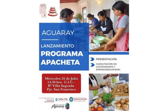 Las Secretarías de Fortalecimiento Socio Comunitario y de Políticas Sociales del Ministerio de Desarrollo Social lanzarán en Aguaray y en General Mosconi, el Programa Apacheta, con una capacitación en gastronomía y emprendedurismo.