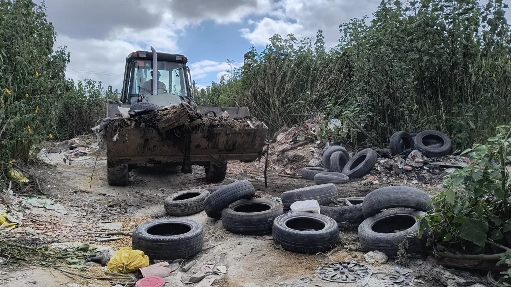 Del lugar se retira una importante cantidad de maleza y diversos microbasurales, compuestos principalmente por neumáticos fuera de uso y escombros; aunque también había animales muertos y residuos orgánicos.