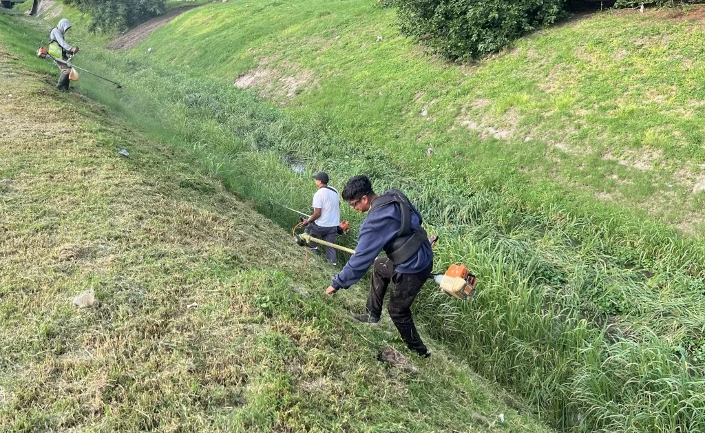 La Municipalidad, junto al Ejército Argentino, realizó tareas de limpieza, corte de pasto y acondicionamiento del canal pluvial Juan XXIII ubicado en la zona oeste baja de la ciudad.