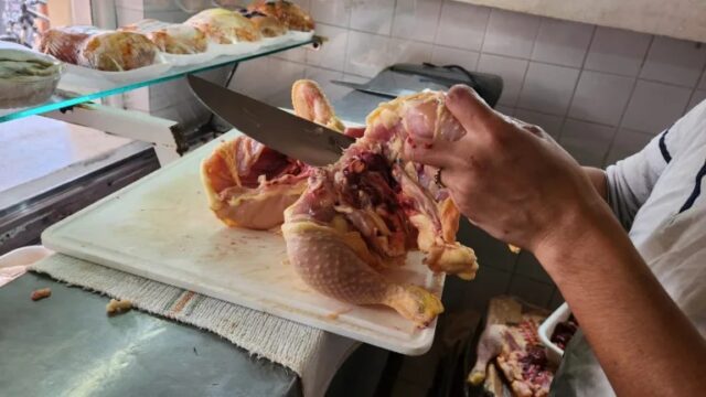 – Pollo fresco: entero de primera calidad $6.480 el kilo.