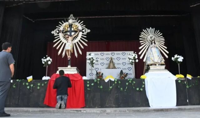 Como todos los años, las imágenes peregrinas del Señor y la Virgen del Milagro llegaron al Centro Cívico Municipal (CCM).