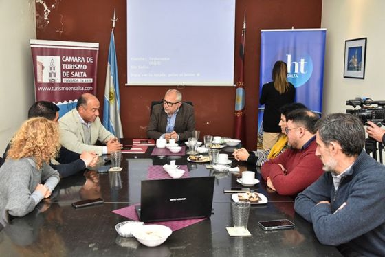 El ministro de Economía y Servicios Públicos, Roberto Dib Ashur, junto al subsecretario de Desarrollo Económico y Control del Gasto, Diego Dorigato, mantuvieron una reunión con el presidente de la Cámara de Turismo de Salta, Gustavo Di Mécola, y referentes del sector turístico, gastronómico y hotelero.